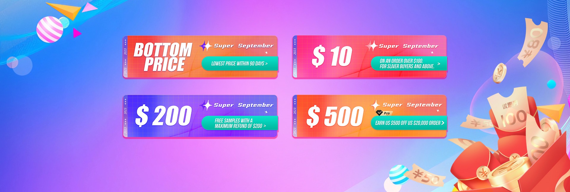 Enjoy money-back protection from Trade Assurance - get an extended 60 days to use our Easy Return service, claim a full refund, or do both. Eligible for all Super September products.